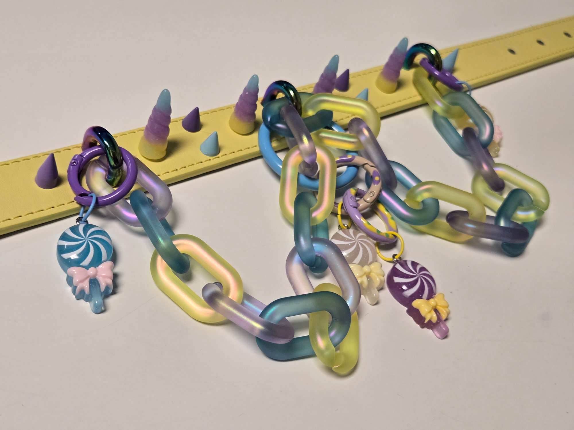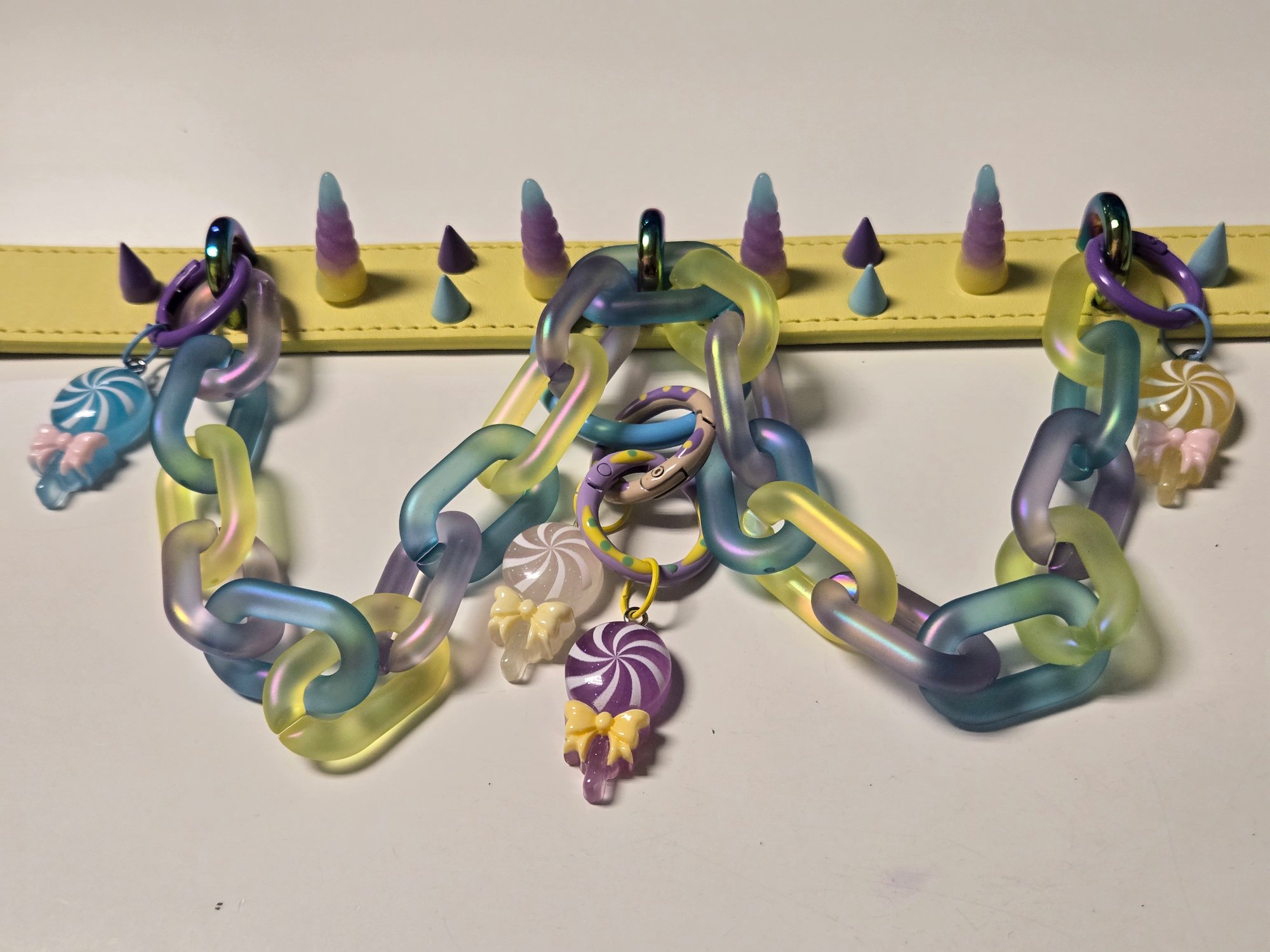 It features a CHUNKY chain, detachable oring and GLOW IN THE DARK LOLIPOPS!!!