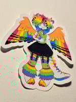 🌈PRISMA🌈 HE is a 90s inspired rainbow raver boy! He was created to share the love everywhere. (He also has his fav rainbow doll that he is usually drawn with!!)
