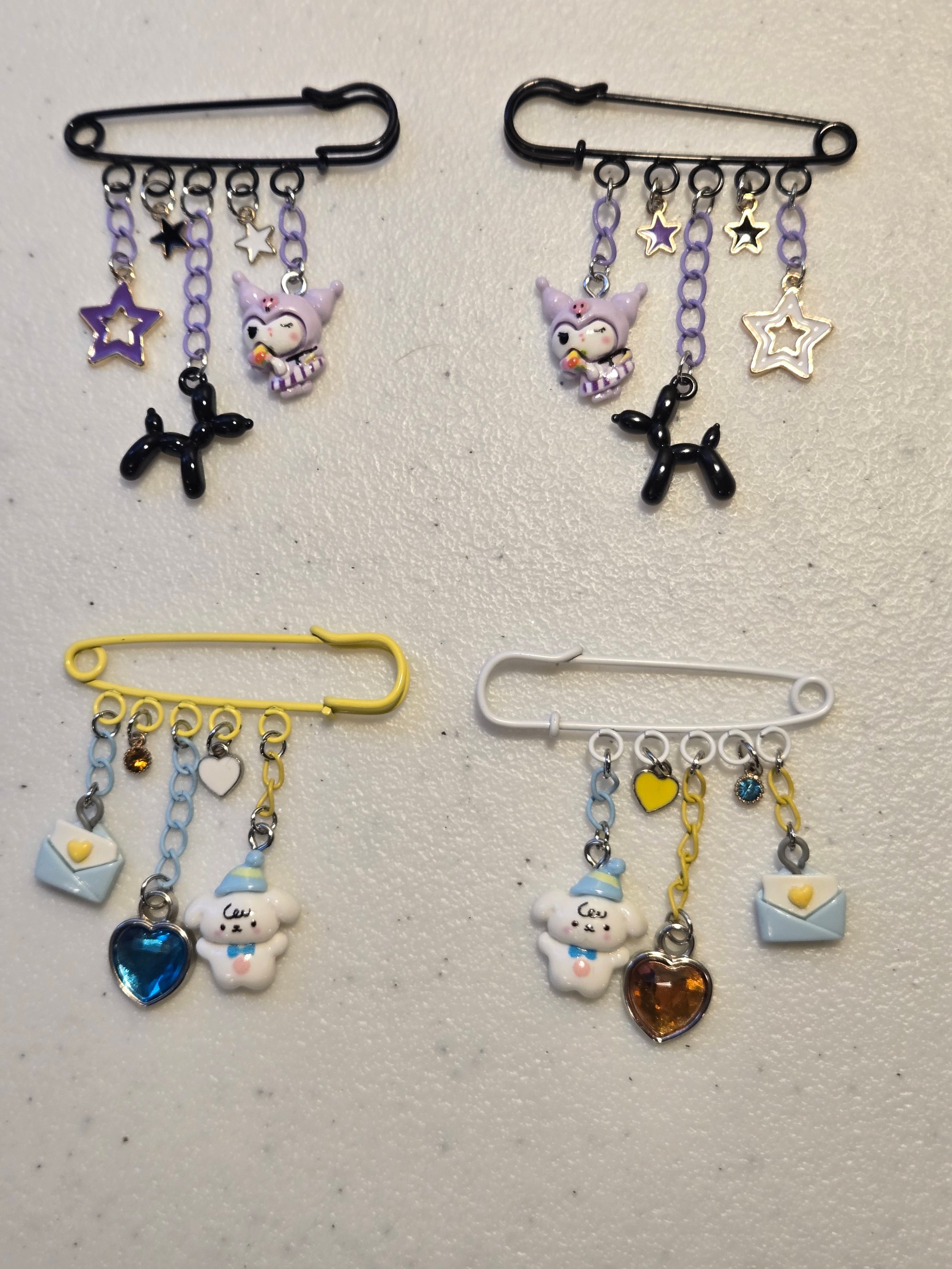 Cinnamorol pastel blue, yellow and white 2 pc safety pin brooch sets.