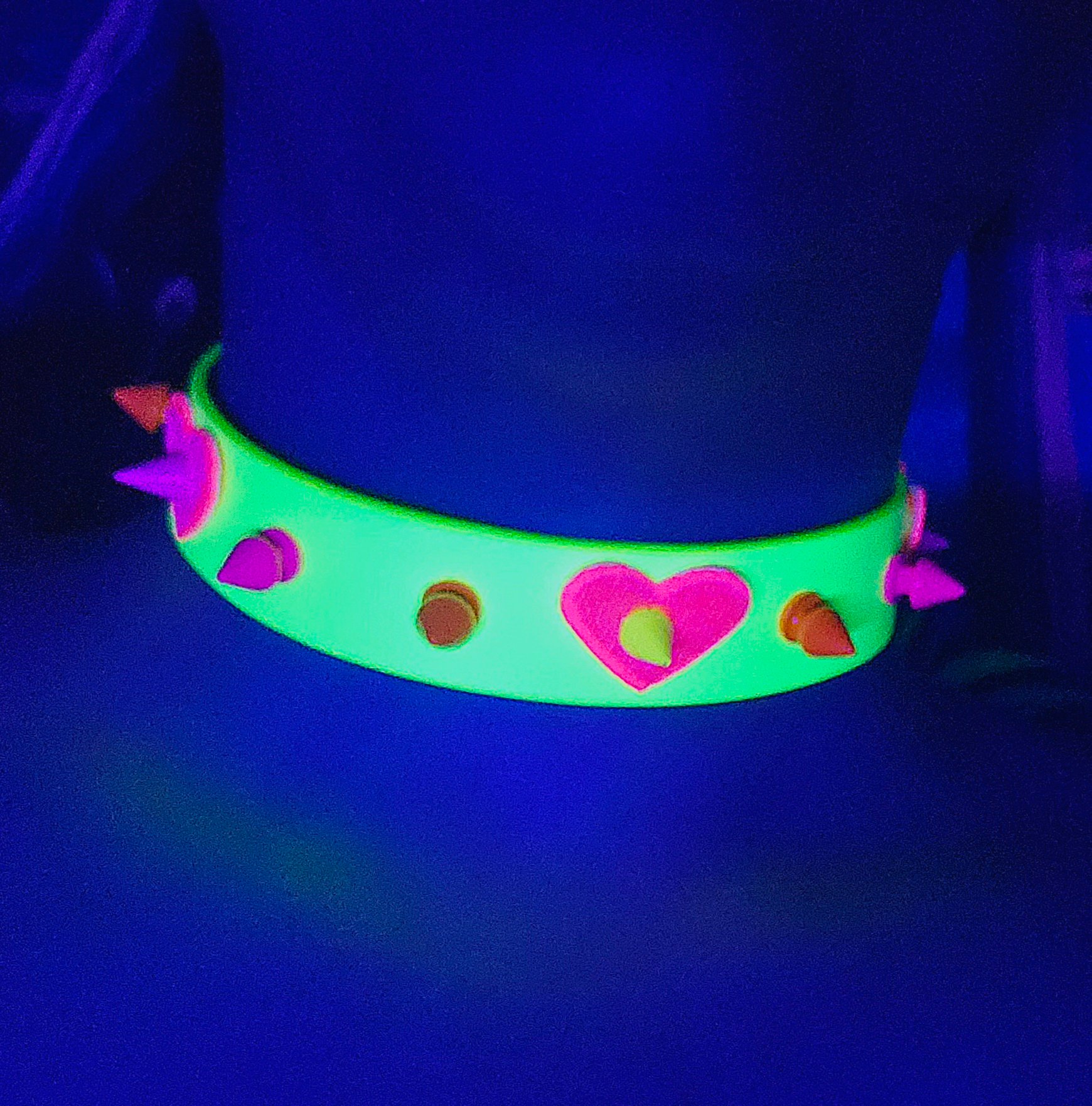 Simple heart lovecore choker, this one is UV reactive!